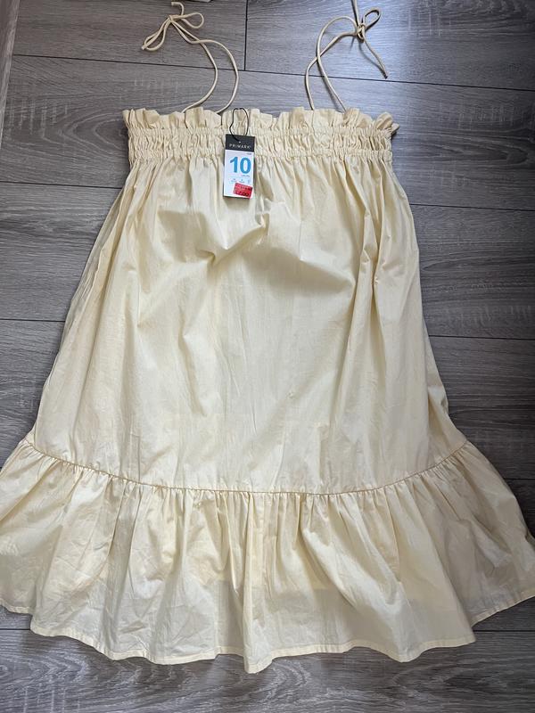 100% котон | Розмір 10 (UK) / 38 (EU) Довжина без бритель 73(ви їх завʼязуєте під себе) Груди 37-50 Талія і бедра вільні (талія 62, бедра 66) 💛 Дуже легка, ніжна й зручна; Зав’язки на плечах — регулюються; Приємна до тіла, не буде парити; Нова, з біркою) Може злегка просвічувати, лише під бежеву білизну