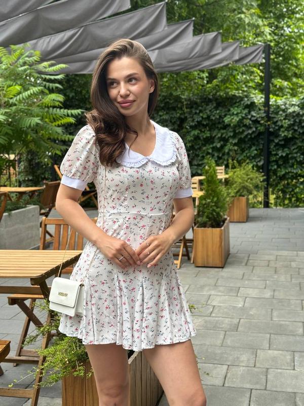 Легкое игривое платье Тканина: штапель Платье сшито из натуральной ткани. На спинке имеет молнию. Украшением платья являются белый воротник и оригинальные рукава😍 Размеры: XS-S, M-L 📦Отправка НП (присутствует после платья )