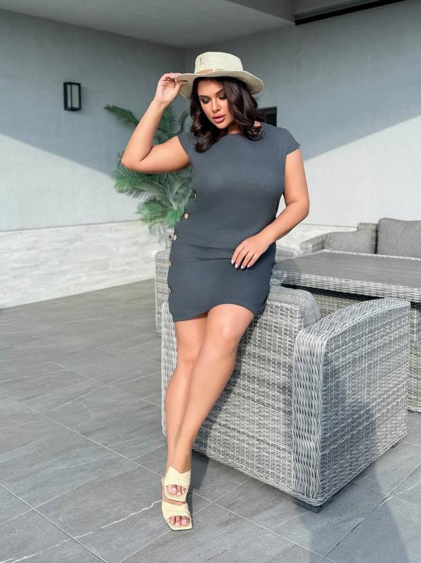 Стильное легкое платье на лето в ярких однотонных цветах. Тканьина - льон, не колеться. Модель с коротким рукавом крылышком, с одной стороны украшена декоративными пуговицами. Платье подойдет как для работы в офисе, так и для летней прогулки. Размеры - 50, 52, 54, 56. Замеры: 50 52 54 56 ОГ - 108 111 114 117 см ОБ - 114 117 120 123 см Длина - 97 102 105 108 см Рукав - 9 см