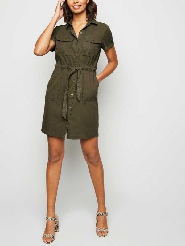 В идеальном состоянии. Красивое платье хаки с поясом под джинс. Тканина легка, не тягнеться. Выглядит супер 😍 Размер 8/36/S, но смотрите по замерам. Замеры (полуобхват): Груди 47 Талия 41 Стегна 47 Длина от плеча 86