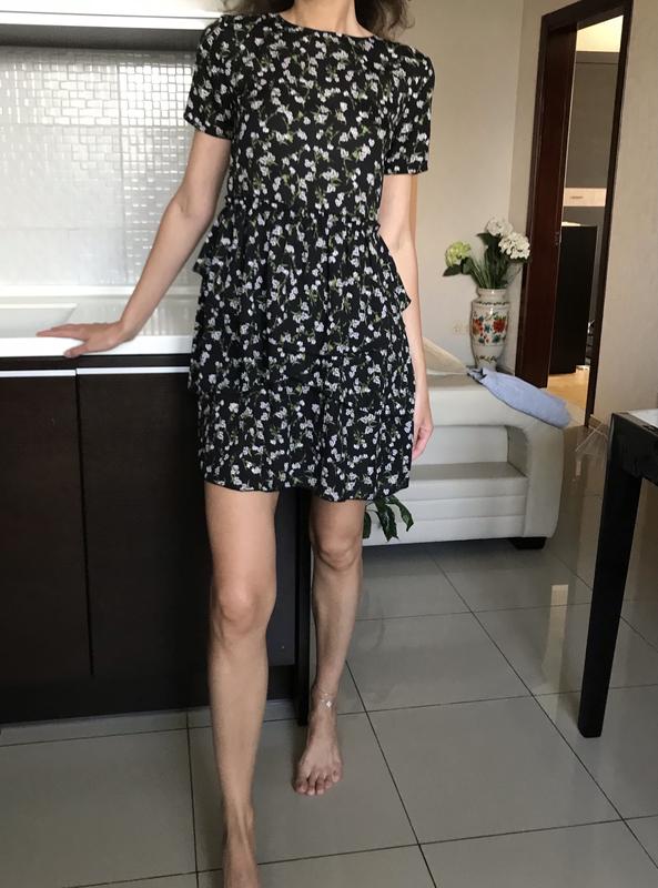 Сукня в квіточку, ніжно-фіолетово-білі дрібні квіточки з зеленими листочками на чорному фоні, жіночна ніжна легка, не мнеться, розмір s