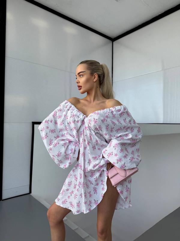 Платье из натуральной ткани Муслин ▫️Модель: abot.491 ▫️Ткань: Муслин ▫️Размер: 42-46 оверсайз ▫️Цвет: белый в принт 🌸- розовый, голубой, мята. ❗️Отличное качество ткани и пошива. Воздушное и легкое платье☀️