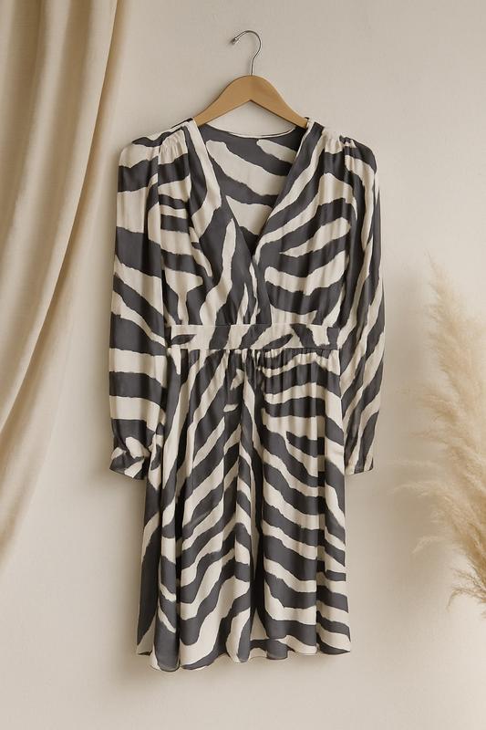Платье H&M шифоновое кремового цвета с принтом зебры. Размер XS. Без дефектов.