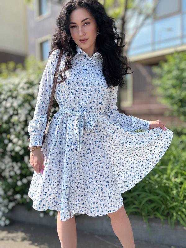 Квіткова сукня - сорочка софт на ґудзиках з коміром з поясом стильне легке плаття