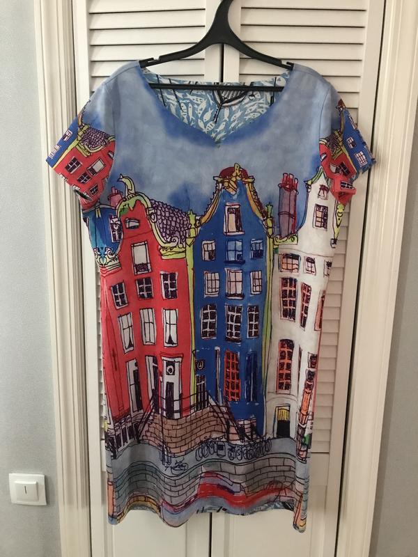 Сукня Lizzy & Coco двостороння. Ця неймовірно красива двостороння сукня має рукави та V-подібний виріз горловини з фестонами. Сукня оброблена англійськими швами, тому її можна носити з обох боків. Краї оброблені лазером, щоб запобігти розтріскуванню тканини. Довжина сукні становить 97см. Виготовлено з 90% поліестеру та 10% еластомеру. Тканина плотна, але мʼяка і ніжна на дотик. Підійде на розмір L-XL. Плаття абсолютно нове без будь яких дефектів і по дуже приємній ціні.