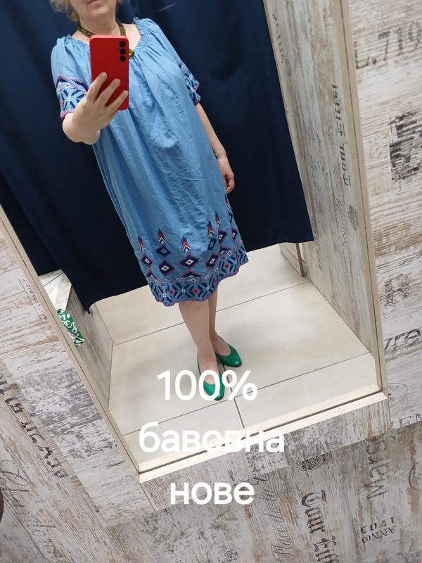 Великолепное летнее платье с вышивкой голубого цвета. Нова, 100% бавовна. На невысокий рост будет чуть ниже колена. одето на модель рост 155 см, укр 48/50