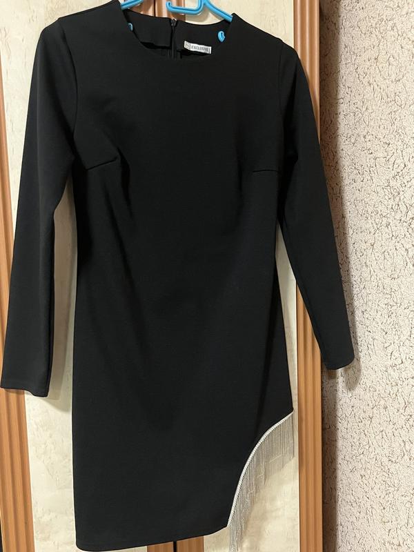 Коротка сукня з довгим рукавом та цікавою деталлю на нозі