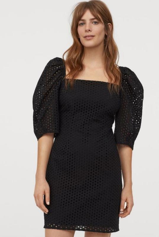 Новое черное короткое платье с вышивкой решиллье от h&m