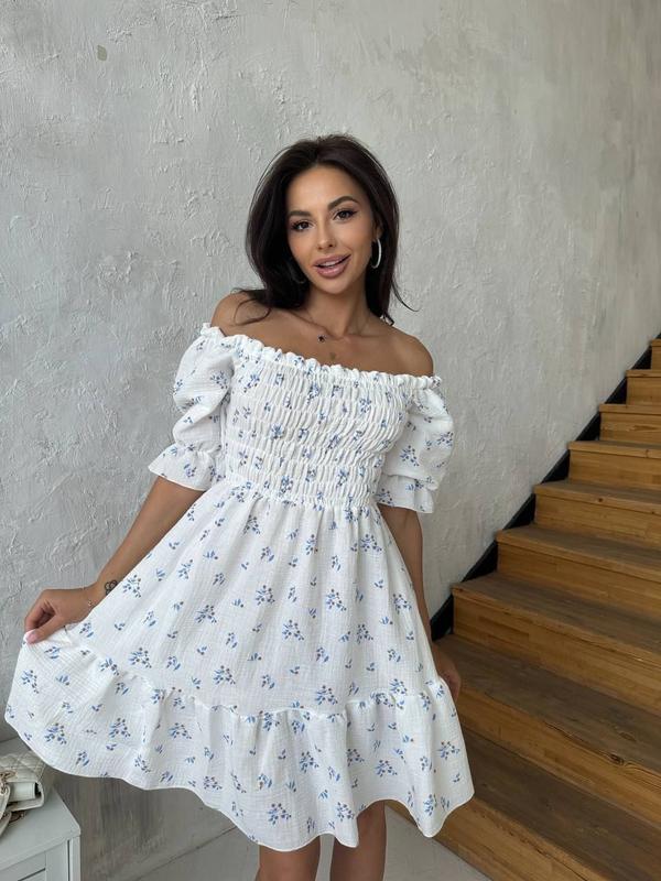 🎉Трендовое платье из муслина🎉 Мод Imma201 Размер:42-44,46-48,50-52 Ткань:муслин Платье, которое будет вам придавать уверенность в себе и в качестве вы будете стильно выглядеть. Длина до колена. На груди резинка.Мозная одевать со спущенными и с приподнятыми плечами