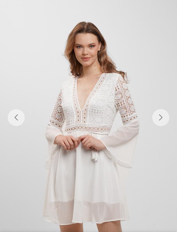 Біла сукня в розмірі М-L Довжина 80 Груди 96 Довжина рукава 60 Талія 74