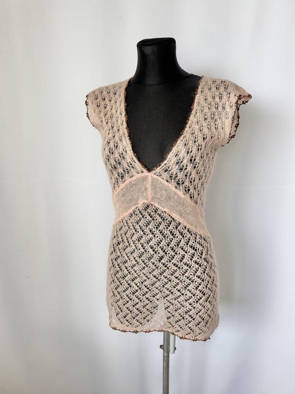 Розовый топ сетка туника мохер шерсть вязаный с завязками интересный необычный на завязках...