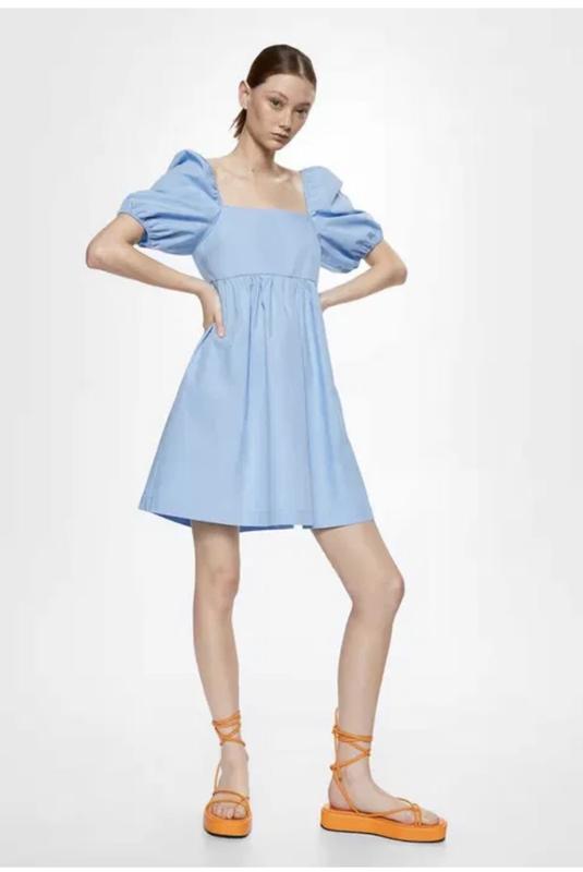 Гарна блакитна сукня , в розмірі S. По залу відкрита спинка та зав’язки на бант. Стан ідеал , вдягала один раз на весілля .