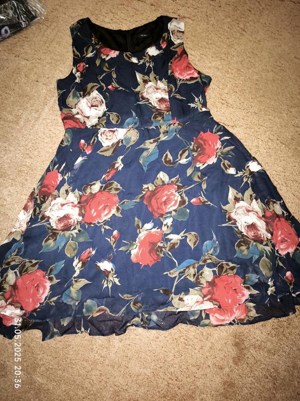 Платье темно-синего цвета с розами, на подкладке ПОГ51см ПОТ 44см ПОС 56см, идет к ОС118-120см Длина платья 90см На подкладке, подклад пришит. Тоненькое.от талии свободное. Не жарке. Состав коттон, спадекс