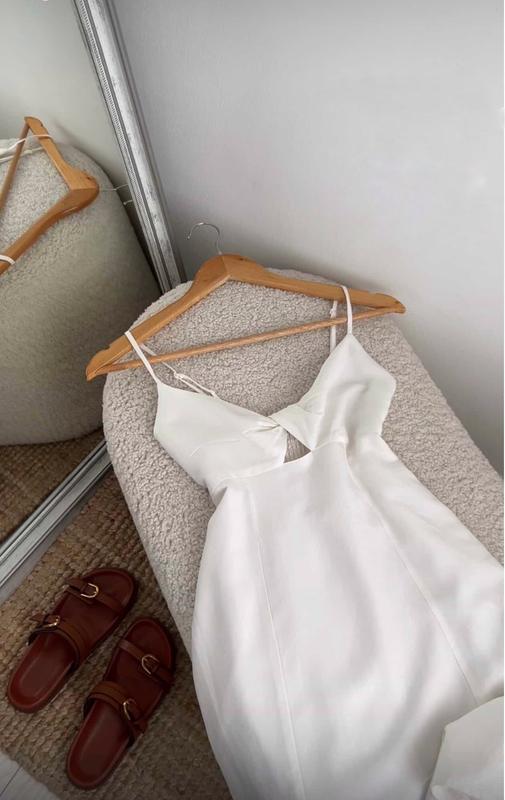 Лляні міні сукня, знизу вільного фасону з дуже гарним перекрутом на грудях, взаді на резинці, бретелі регулюються, має підкладку, тобто нічого не просвітлює, ні літо І Д Е А Л Ь Н А 🤍🕊️