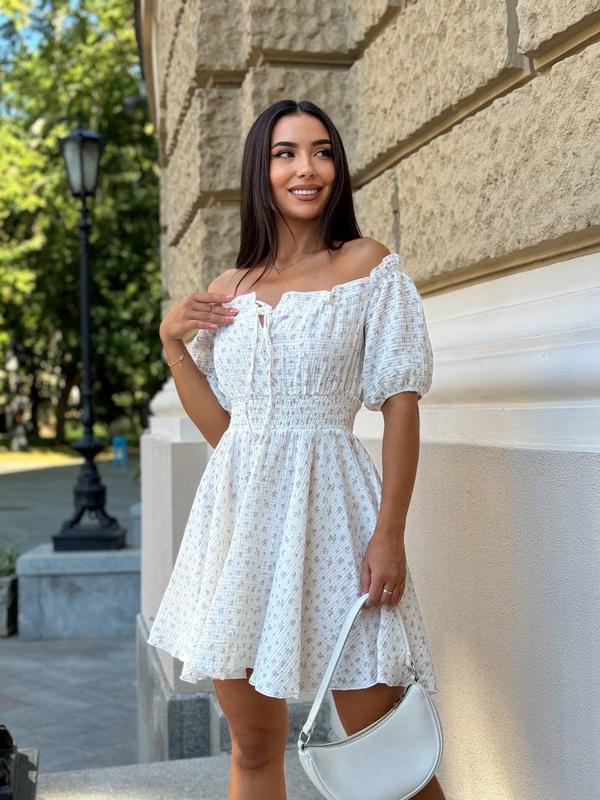 Сукня Фото реал💎 Мод М503 Тканина: муслін Розміри: 42-48 Сукня створена з натуральної дихаючоі тканини муслін 💞 В універсальному розмірі, за рахунок резинки чудово тягнеться та підійде до 48 розміра ✅ Заміри: М503 Охват грудей 86-100 см Талія 60-90 Довжина сукні по спині 70 ( із рахунку того що сукня одягається на плечі) Довжина рукава 23 см