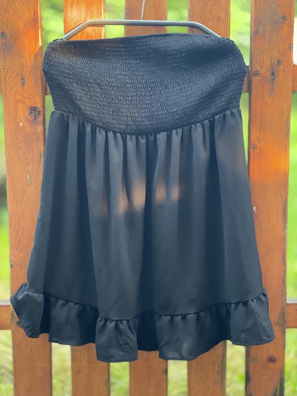 Чорна сукня-бандо від SHEIN Curve (розмір 0XL) 🌸 Ідеальна для літніх прогулянок або відпочинку! 🔹 Бренд: SHEIN Curve 🔹 Розмір: 0XL (підходить для EU 46-48) 🔹 Матеріал: 100% поліестер 🔹 Стан: нова, з біркою 🔹 Особливості: • Еластичний верх (смокінг) для зручної посадки • Легка повітряна тканина • Волан внизу додає ніжності 📦 Вироблено в Китаї 🧺 Догляд: прання при 30°C, не відбілювати, делікатний режим сушіння