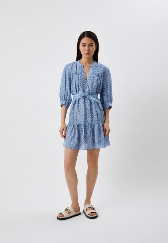 Коротка розкльошена сукня з принтом у вигляді серця. Має V-подібний виріз, застібку на ґудзиках, короткі пишні рукави, а також пояс на талії. Основна тканина: 62% льон, 38% шовк Гудзики: 100% кам'яна Заміри: Довжина 90 По грудях досить вільна, можна коригувати за допомогою поясу від XS до M. Головне на зріст не више 175 см, тому, що буде надто коротка. Стан нової.