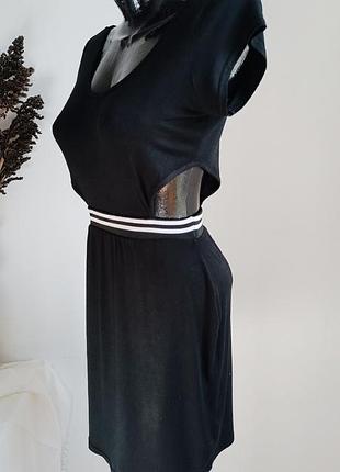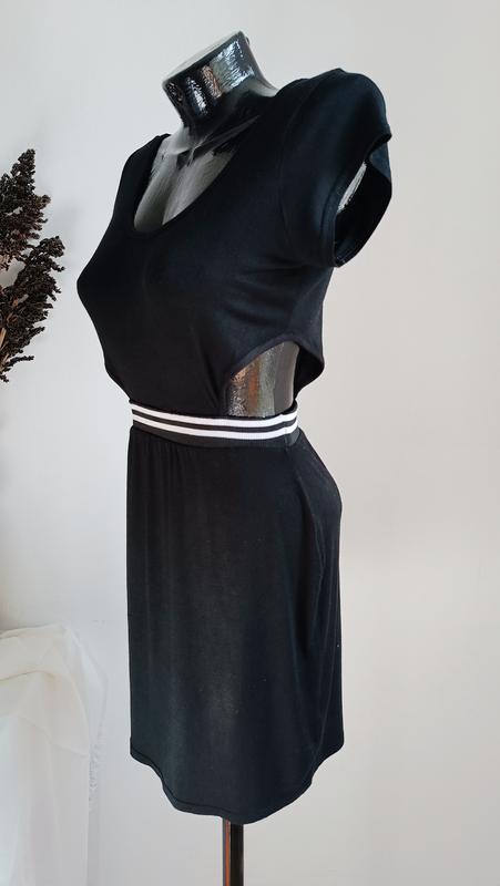 женское летнее платье черного цвета с вырезами на талию размер указанный 40, но ориентируйтесь по замерам ПОГ 40 см тянется до 54 см ПОТ 30 см тянется до 40 см ПОБ 46 см тянется до 60 см общая длина 65 см длина юбочки 50 см 95% вискоза 5% еластан ткань очень хорошо тянется также подойдет для девочки подростка
