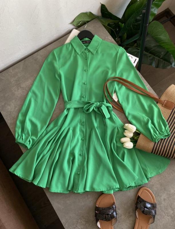 Безопасной оплатой новой по почте не отправляю Приятная к телу. Размер по набору 8, будет на XS маленькую S. Пышная юбка, актуальный фасон Длина 81 см ПОГ 44 см ПОТ 44 см, регулируете поясом ПОС свободный рукав от шеи 64 см
