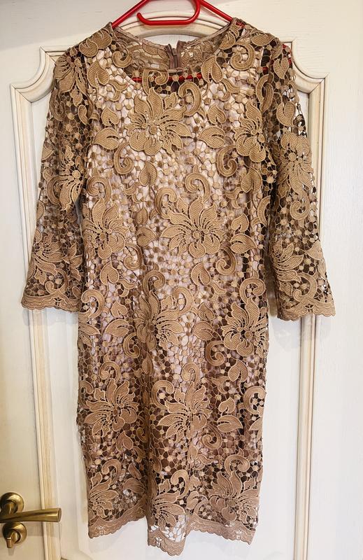 Симпатична сукенька з підкладинкою бежево золотистого кольору, виглядає ніжно і романтично На змійці на спинці до середини бедер