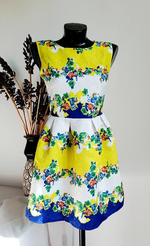 женское платье белого цвета с ярким цветочным принтом размер указанный 36, но ориентируйтесь по замерам ПОГ 40 см ПОТ 34 см длина 80 см бирочка с указанным составом ткани отсутствует, по ощущениям полиэстер тканина не тягнеться