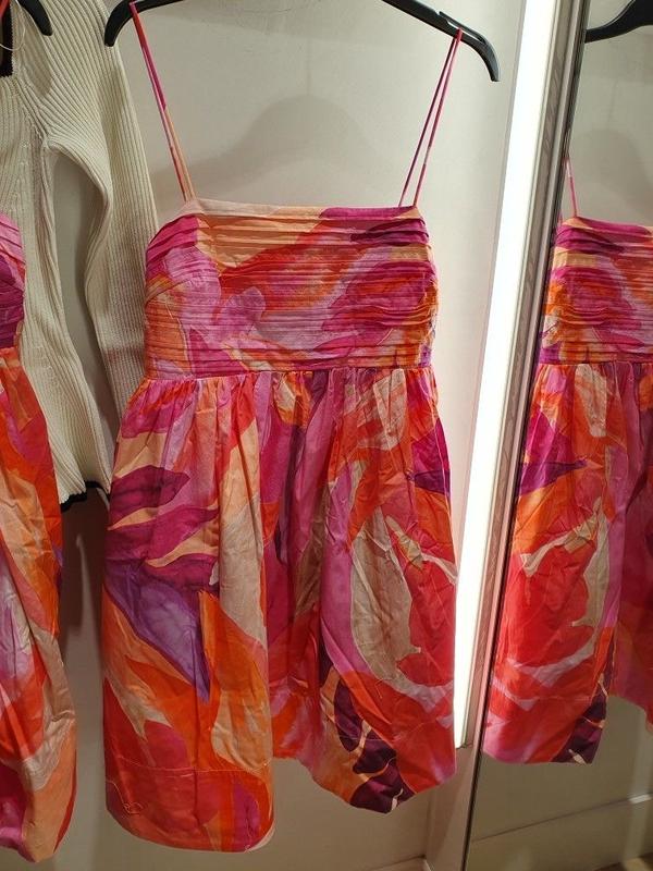 Квітковий принт , 100% котон, є підклад ,не просвічуе , розмір S, без дефектів