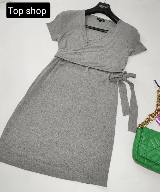 стильное женское базовое платье серого цвета с элементом на запах, платье с короткими рукавами, в идеальном состоянии 😉