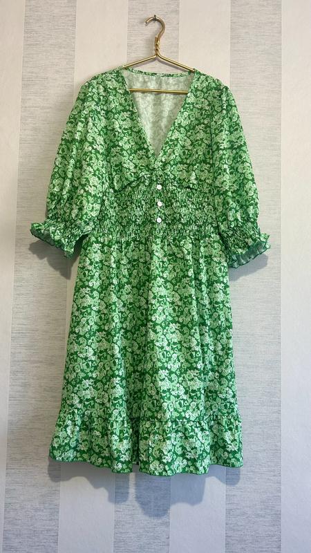 Сукня поліестер в ідеальному стані. Талія і рукавчик на резинці. Пог 45см, пот 38-41см, поб 60см, довжина по спинці 94см.