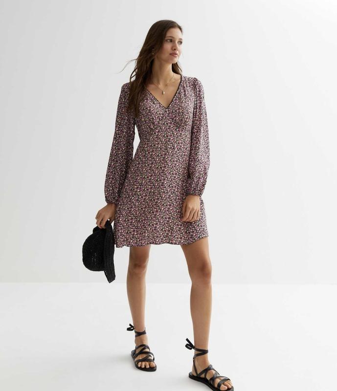 Дуже красива сукня в квітковий принт і V-подібним вирізом та мереживною обробкою