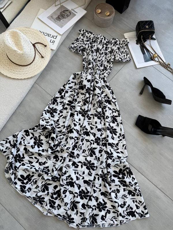 Розміри: S, M, L, XL Тканина: софт, дуже приємний на дотик Кольори: білий, червоний та чорний Верх сукні на резинці. Супер якість.