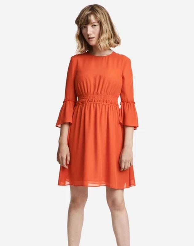 Добрый день, для точного определения подойдет вещь или нет, сравнивайте любое с измерениями своей подобной вещи, а не со своими объемами. Рекомендую перед заказом прочитать информацию в разделе "Про меня" это займет несколько минут Вашего времени но там много полезной информации 🫶 Ячкрава помаранчева шифонова сукня. Круглая не глубокая горловина, застегивается сзади на две пуговицы. Рукав укороченный, от локтя расклешенный. Талия на резинке. Платье на шифоновой подкладке в тон. Тканина тонкий не фактурний шифон. Легкая, мягкая, не грубая, приятная к телу. Не тянется, не просвечивается благодаря подкладке. Цвет: Оранжевый Размер по набору: EUR 34, можно на 36 Состояние: Новый Эффекты: Без дефектов Замеры произведены в полуобхвате. Длина изделия от плеча 89см Длина от подмышки до низа 66см Длина рукава с плечом 56см Ширина от плеча до плеча 39см Высота проймы 22см Полуобхват груди 42см Полуобхват талии 31см тянется до 48см Полуобхват бедер 62см Полуобхват низ Свободно Полуобхват рукава сверху 15см Полуобхват рукава снизу над оборкой 14см Состав ткани : 100%Полиэстер. Подкладка: 100%Полиэстер. Оплатить можно через Безопасную покупку или оплатить на карту Приватбанка. Доставка возможна Укр-почтой или Новой почтой. Брожение на оплату только одна сутки. Не забудьте ПОДПИСАТЬсь, чтобы не пропустить новинки и распродажи. Вдалих покупок 🌹
