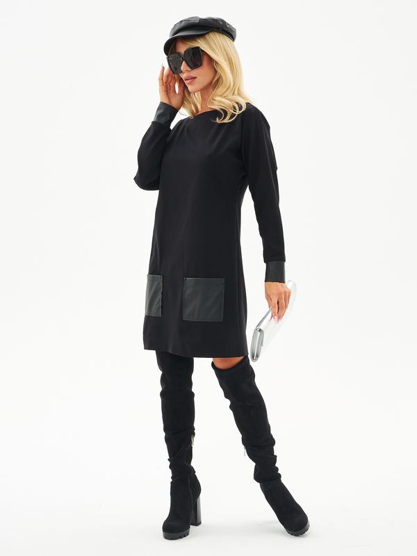 Нова чорна базова комбінована сукня Вʼязані рукава, кармани з тканини, але яка виглядає як шкіра, дуже стильна в житті, розмір S-M, (42-44) Гарно тягнеться, всі бірки на фото