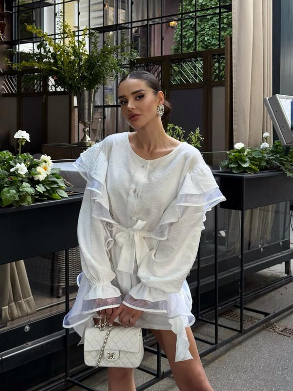 Женское платье льняное короткое летнее Велин Ткань: лен-жатка, отделка - органза Состав: 70% лен, 30% полиэстер, отделка - 100% полиэстер Размер: XS, S, M, L Цвет: молочный, черный Уход: ручная стирка до 30° Производство: Украина
