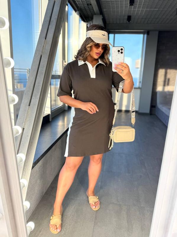 Арт 2392har+ Ткань кулир (производство Турция, хлопок 95%) Цвет черный, серый, шоколад, бордо Размер 48-50,52-54,56-58 заміри надам за потреби Невероятно классное стильное легкое платье с воротничком. По бокам разрезы. Ткань хорошо тянется. Рукав короткий.