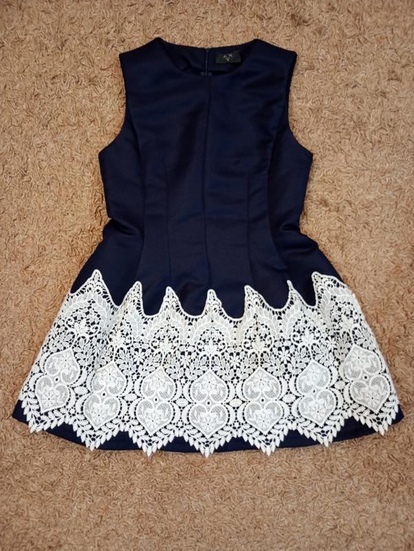Платье от британского бренда AX Paris, выпускающее коллекции Celebrity Style и дизайнеры которого сочетают несочетаемое - строгость английского стиля с романтичностью и нежностью французского. Невероятно интересная речь в парижском стиле. Фасон baby doll - подчеркнутый силуэт в области лифа, мягко выделенная линии талии и кукольная юбка. Ткань очень плотная, тяжелая, с отливом, идеально держит форму. Глубокий темно-синий цвет. Лаконичность силуэта, монохромного цвета и четких линий на контрасте с акцентными деталями – накладка на юбке из плетеного крючком ирландского кружева. Платье уместно на праздники, на вечеринке с любимыми подружками, на свадьбы, корпоративы, т.п. Размер - 12. Длина - 78 см. Объем груди - 90 см. Объем талии - 78 см. Объем бёдер - 106 см. Длина молнии - 50 см. Ткань - полиэстер (100%). Стан идеален, без каких-либо нюансов.