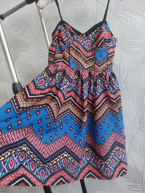 Очень красивое котельное платье, красивые цвета.... мое из самых любимых, состояние как новое!!!! На спинке резиночка ( жатка), подойдет на разные объемы талии и груди. Замеры: длина от груди -70см, + брители 7см ( они регулируются). талия 34см - на жатке тянется по фигуре, в груди-40см. Размер S-M.