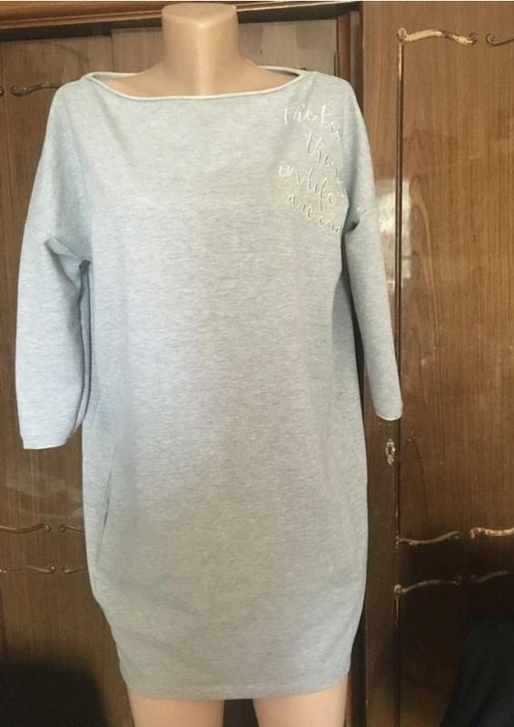 Очень стильное трикотажное платье в идеальном состоянии (один раз одела ,состояние новой вещи)пошив кокон ,по бокам два вточных кармана (длина 81,пог54,талия54,низ45)на размер s