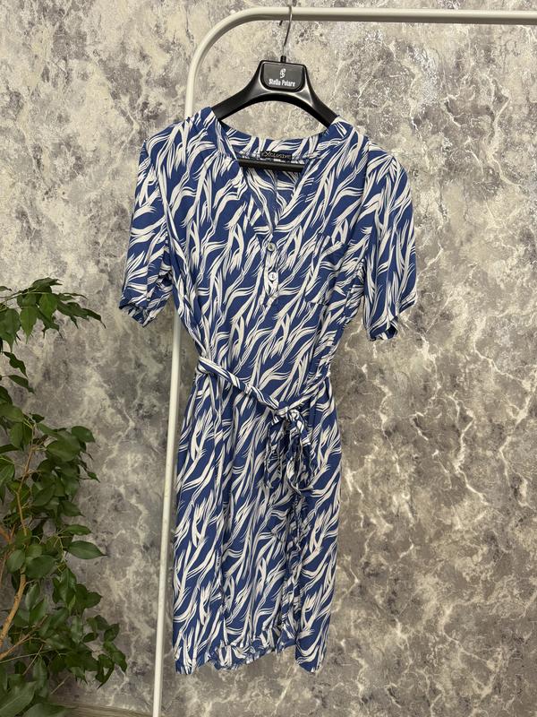 Базова літня сукня з віскози Розмір 48, маломірить, потрібно, щоб сиділа вільно Є кишені Довжина 88 ПОГ 49 ПОТ 48, стягується поясом ПОБ 55