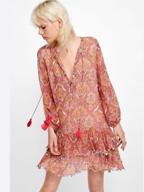 Сукня Zara в стилі бохо, легка , довгий рукав , є підкладка 📍Розмір - S 📍Довжина- 83 📍Пог- 49 📍Плечі -37 📍Рукав - 52