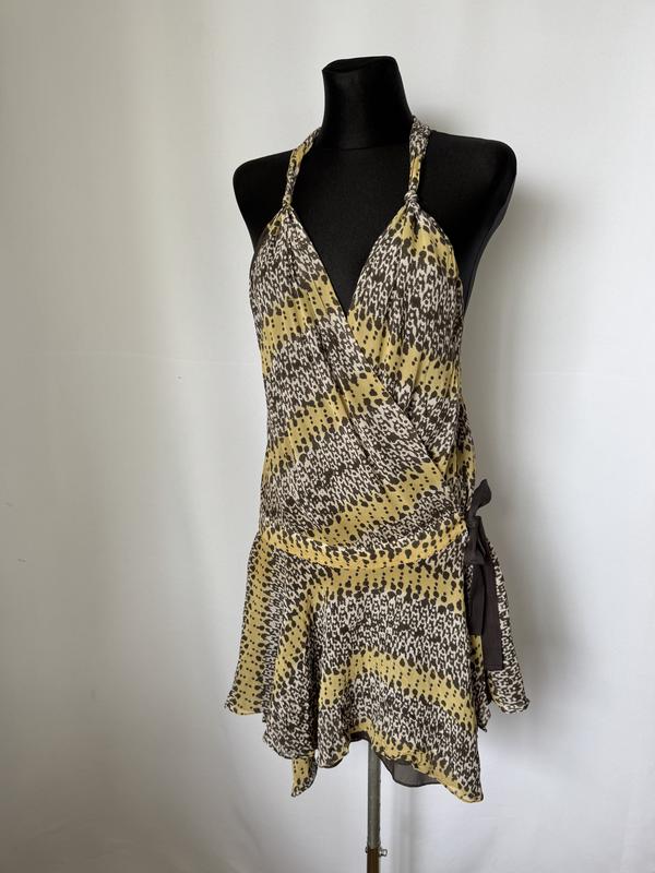 Allsaints платье шелковое с заниженной талией на запах желтое серое шифон