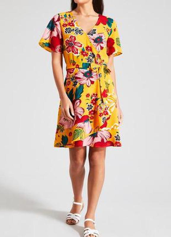 платье на запах в цветочный принт-это любовь с первого взгляда. Свободный крой, , дизайн включает в себя сплошной цветочный принт и женственный передний запах.Элегантный подол с оборкой и короткие рукава завершают дизайн. Платье на груди запах,внизу запах обманка.,сзади на талии резинка.Смотрится очень красиво. Размер указан 14. Замеры: Пог 50 -54 см(за счет запаха ). Пот 39-48 см.(сзади резинка) поб свободные до 67 Длина спины 90 см. Без бумажной бирки. Присутствует бирочная леска. Примерки нет. Обмена и возврата нет! Пожалуйста, совершайте покупку обдуманно, уточняйте все детали перед покупкой. С готовностью отвечу на интересующие Доставка: Отправка Новой почтой каждый день после обеда.(кроме воскресенья) ❗️100% оплата на карту, не забывайте пожалуйста учитывать комиссию банка.❗️ - Наложки НЕТ!