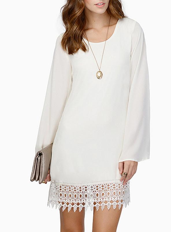 Белое платье туника с кружевом