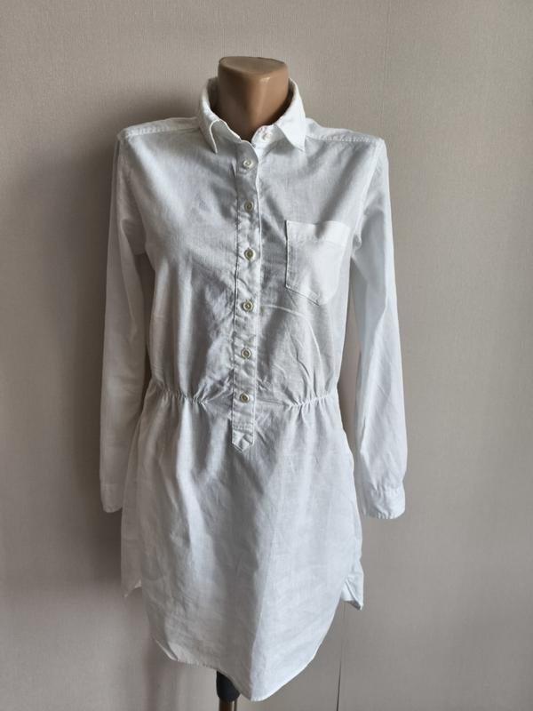 Указан размер XS. Плечи 37см, рукав 58см. ПІГ 43см. ПИТ 35см. ПИС 48см по бокам карманы, длина от плеча 82см. Состав: linen 52%, cotton 48%