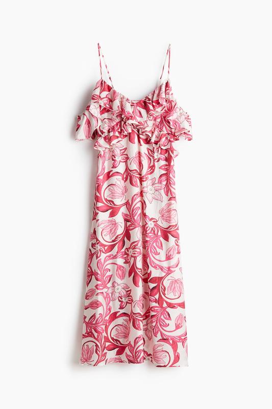Легка сукня без підкладки на застібці-змійці збоку та з регульованими бретельками з останніх колекцій відомого бренду. Тканина легка, немпросвічуєтся та не тягнеться. Напівобʼєм грудей: 41 см, напівобʼєм талії: 44 см, напівобʼєм стегон: 51 см, довжина сукні: 129 см.