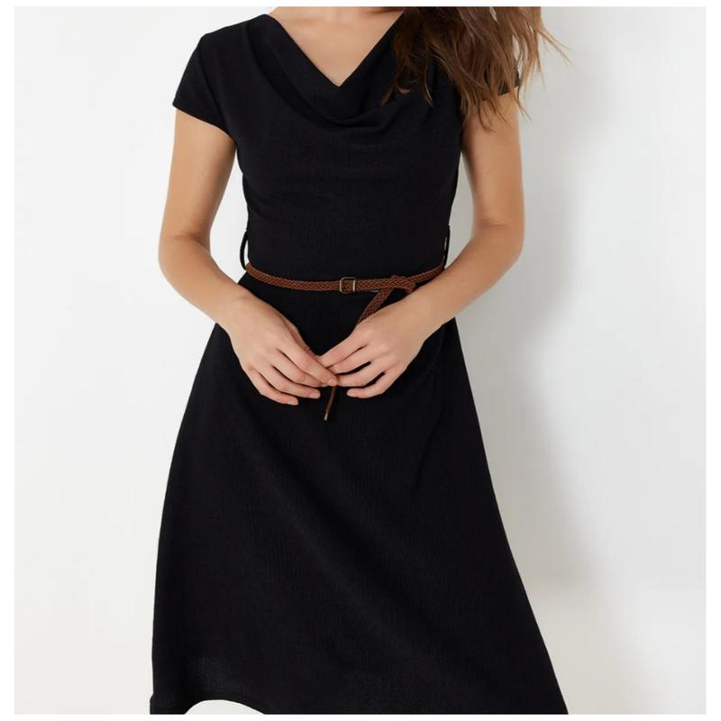 женское платье черного цвета. короткая без карманов, без подкладки с поясом