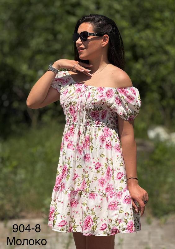 💙💛 Женская СУКНЯ 💛💙 Артикул: 904-8 😍 Летнее, легкое платье с ярким узором. Верх платья открытый, с узелком по центру (по желанию можно завязать) Эластичные сборки на груди и талии обеспечивают прилегание и растяжимость ткани. Немного расклешенная к низу, что придает ей женственность и легкость. Идеальный вариант для лета и прогулок. ✂️Материал: коттон 🌟Хорошего качества 🏷 Размеры: М, L. 📏📏📏Замеры: Размер М : Длина изделия - 74 см Длина рукава - 18 см. Ширина плечей - 30 см. НОГ -32 см. НОТ - 26 см. Низ - 100 см. Размер L: Длина изделия - 78 см. Длина рукава - 20 см. Ширина плечей - 32 см. НОГ - 34 см. НОТ - 28 см. Низ - 100 см.