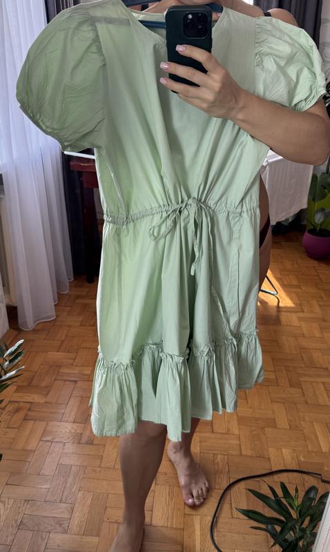 Чудове котонове плаття мʼятного кольору. Розмір Л. Можна на М, бо в поясі стягується. Я навіть новина його в ХЛ