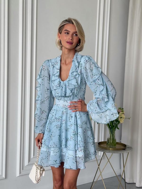 Короткое шифоновое платье с воланами в цветочный принт