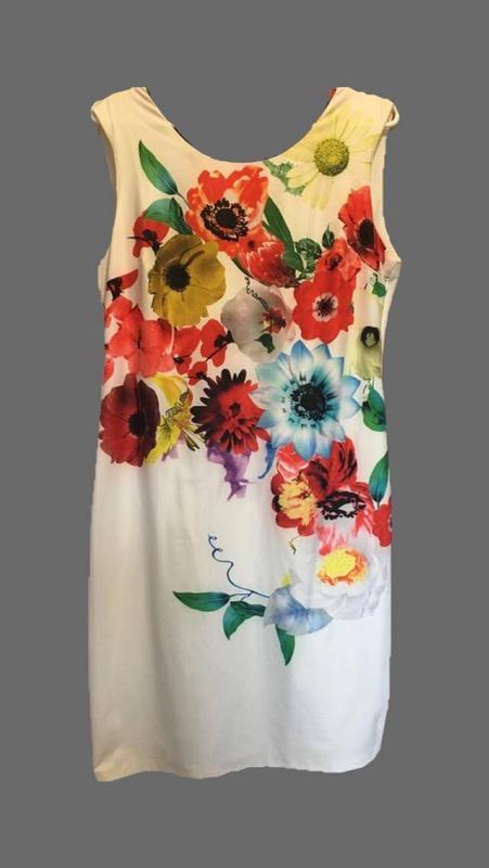 Дуже красивий принт, приємна тканина, ззаду є зав'язки, змійка збоку Довжина: 82 см По грудях: 45 см По талії: 41 см Стегна: 45см без дефектів