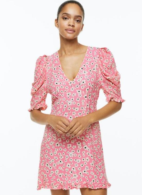 Короткое платье из качественной 100% вискозы от H&M. Оборки по низу рукавов и платья. V-образный вырез, сборка под грудью, короткие рукава-фонарики, вытачки спереди и сзади. Слегка расклешенная юбка Застежка на скрытую молнию сбоку. Без подкладки. Размер XL 180/116A Состав : 100% вискоза Длина - 86 ПОГ - 58 ПОТ - 52 ПОС - 62 Плечи - 34 Рукав - 45